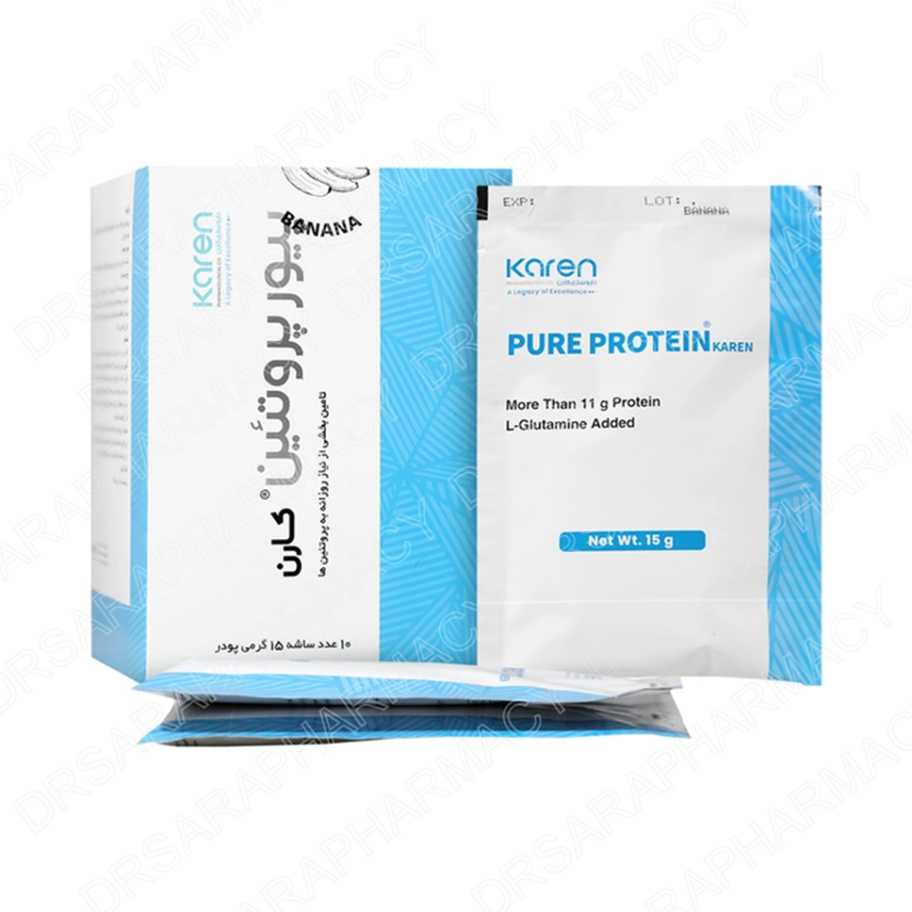 پیور پروتئین (Pure Protein) یک مکمل پروتئینی حاوی وی ایزوله و اسید آمینه الگلوتامین است که برای کمک به عضلهسازی و ریکاوری بهتر بعد از تمرین طراحی شده است. این محصول توسط شرکت داروسازی کارن تولید میشود و به شکل ساشههای ۱۰ عددی با طعمهای موزی و شکلاتی در بازار موجود است.